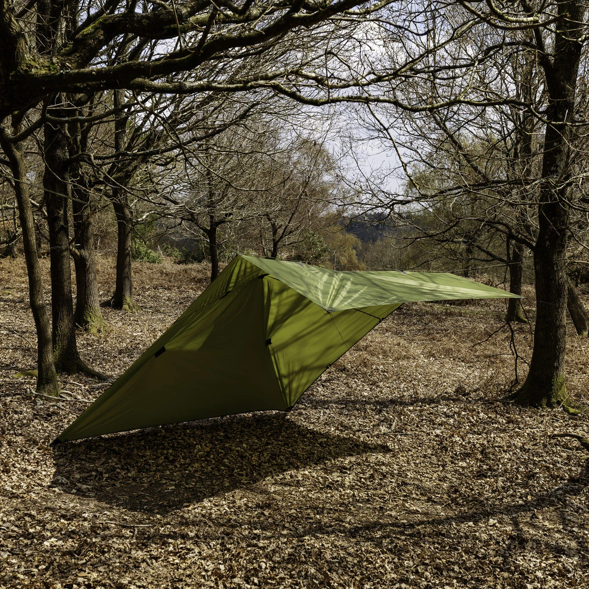 Measuring 3 m x 3 m, the Tracker Tarp gives the user and their equipment shelter in all conditions. It is made from a strong, lightweight, high tensile ripstop nylon with silicone elastomer coating on both sides.
